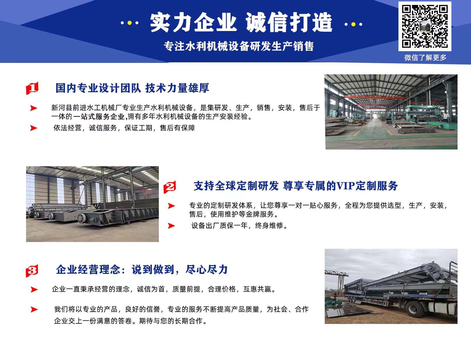 前進(jìn)水工優(yōu)勢:具有專業(yè)研發(fā)團(tuán)隊(duì),精湛的制造工藝,嚴(yán)謹(jǐn)?shù)臋z驗(yàn)技術(shù),完善的售后服務(wù)